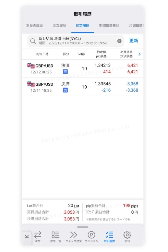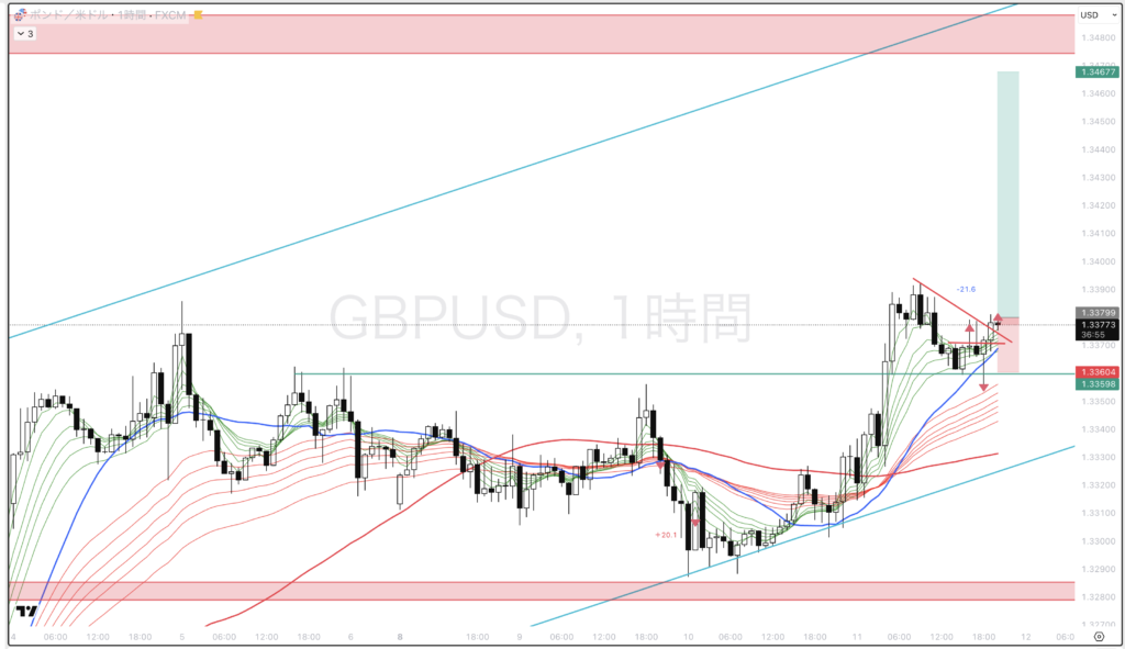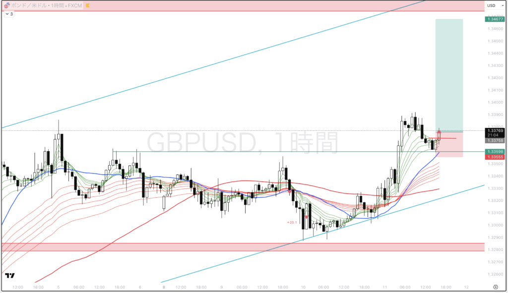 その後20:12に再度買いエントリー。下のスクショは2回目の買いエントリー時のチャート。