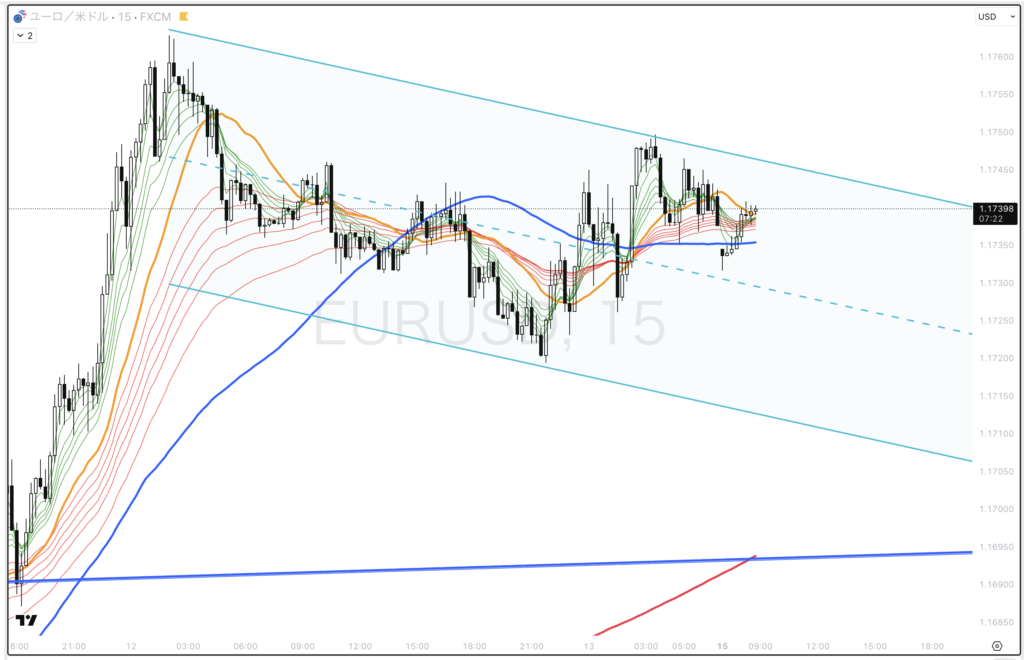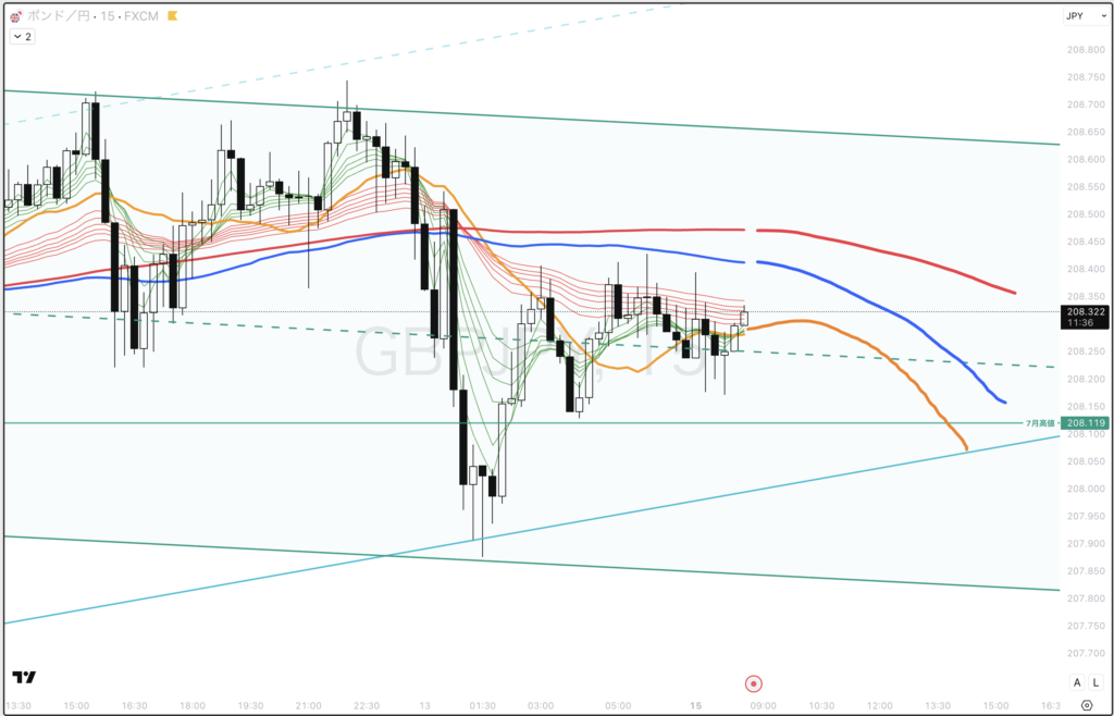 15分だけみたら、もし下降maPOになったら、三角保ち合い下限まで売りに検討できそうかな〜。ここから50pipsもあるし。でも上位足三角保ち合い抜けるまでは手を出さないのが無難か…🤨💭