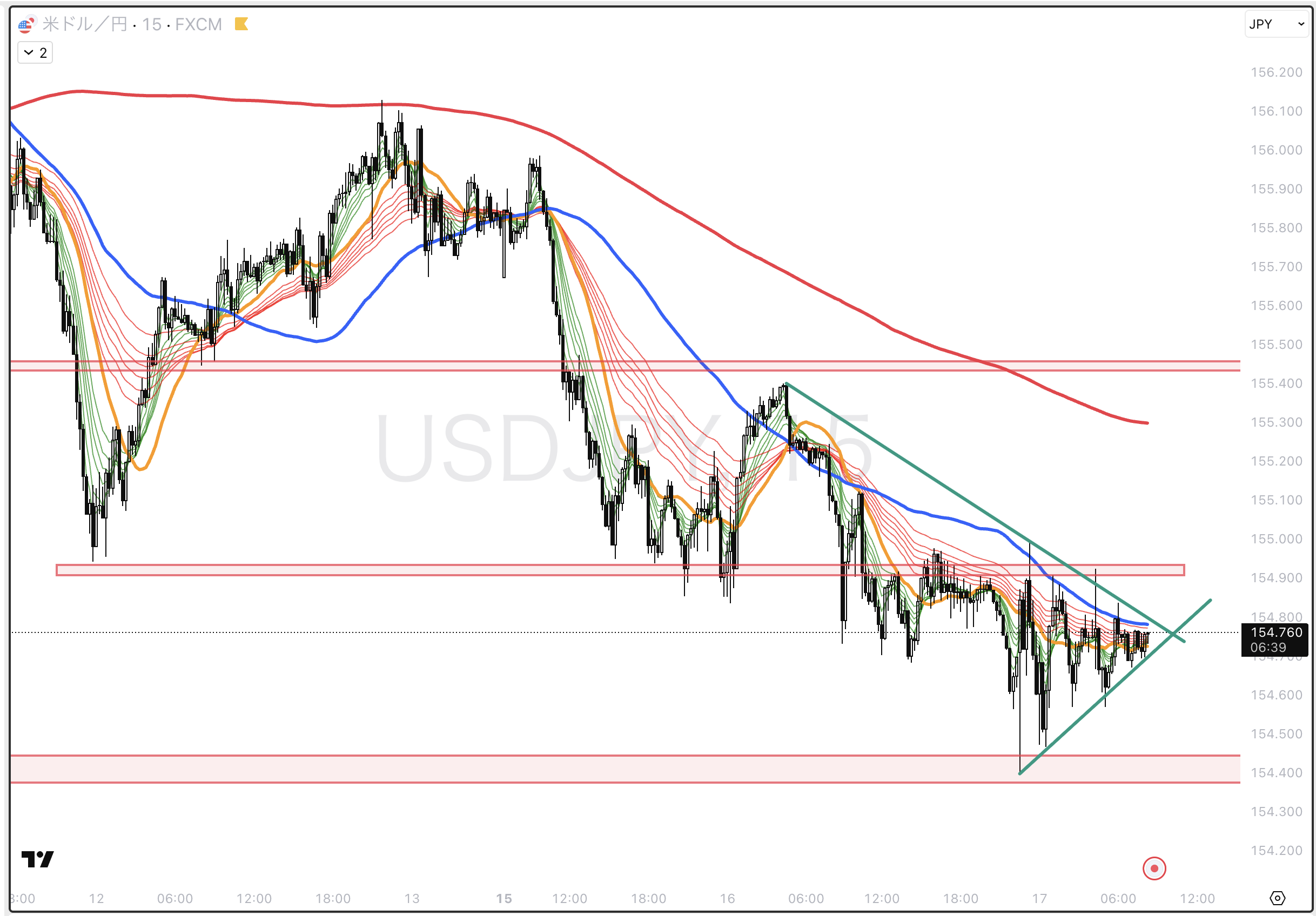 15分で見ると、すごい値動きですね…😅けっこう売り優勢だと思うんだけどな〜。maPOになったら売りエントリー狙いたい。