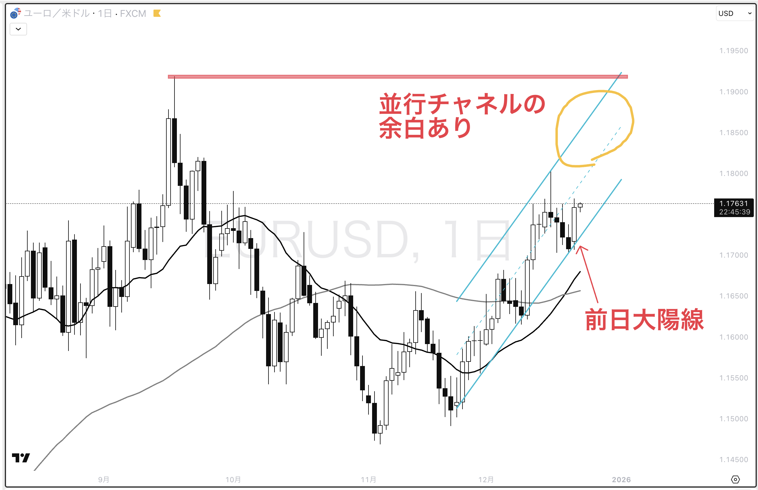 🎄24日(水)から休場になる国もあるし、23日(火)今日が今週の最後のトレードになるかもしれないな〜。
