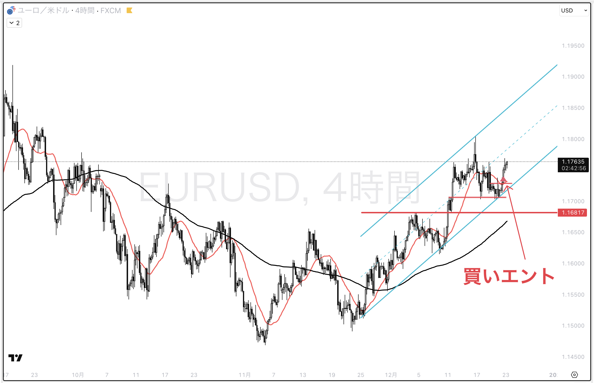 現在ユロドルは、昨日からの買いポジションを保有中です。