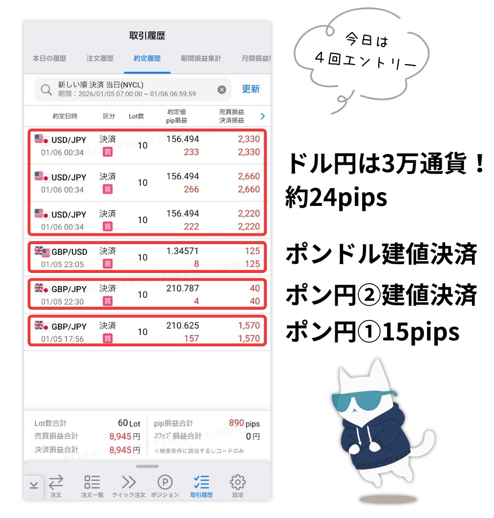 ポン円2回、ポンドル1回の、ドル円1回の4エントリー。
