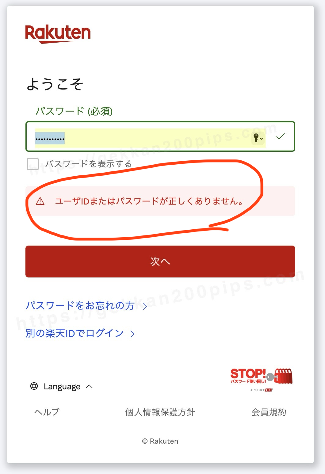 ・ログインするためにIDとパスワードを入力しても「⚠️ユーザIDまたはパスワードが正しくありません」と表示されログインできない。